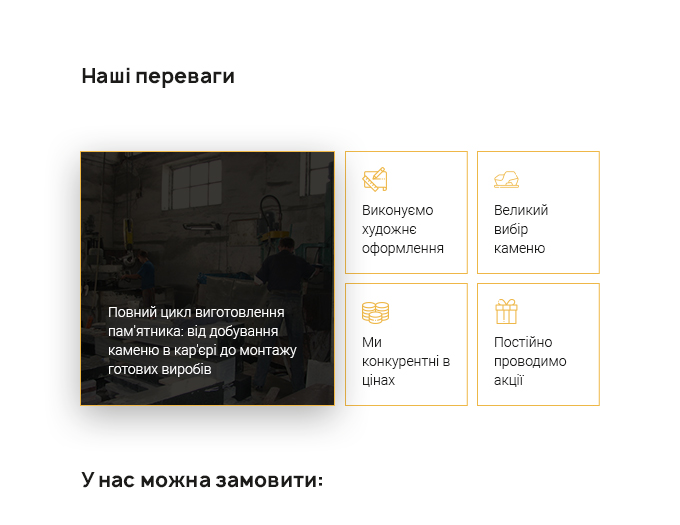 - замовлення авторських проєктів для пам’ятників;